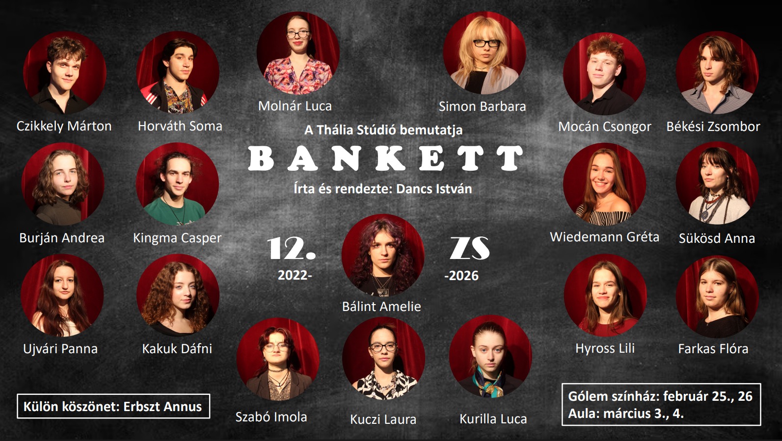 2026. március 3-án és 4-én bemutató előadást tart a Thália Stúdió „Bankett” címmel.